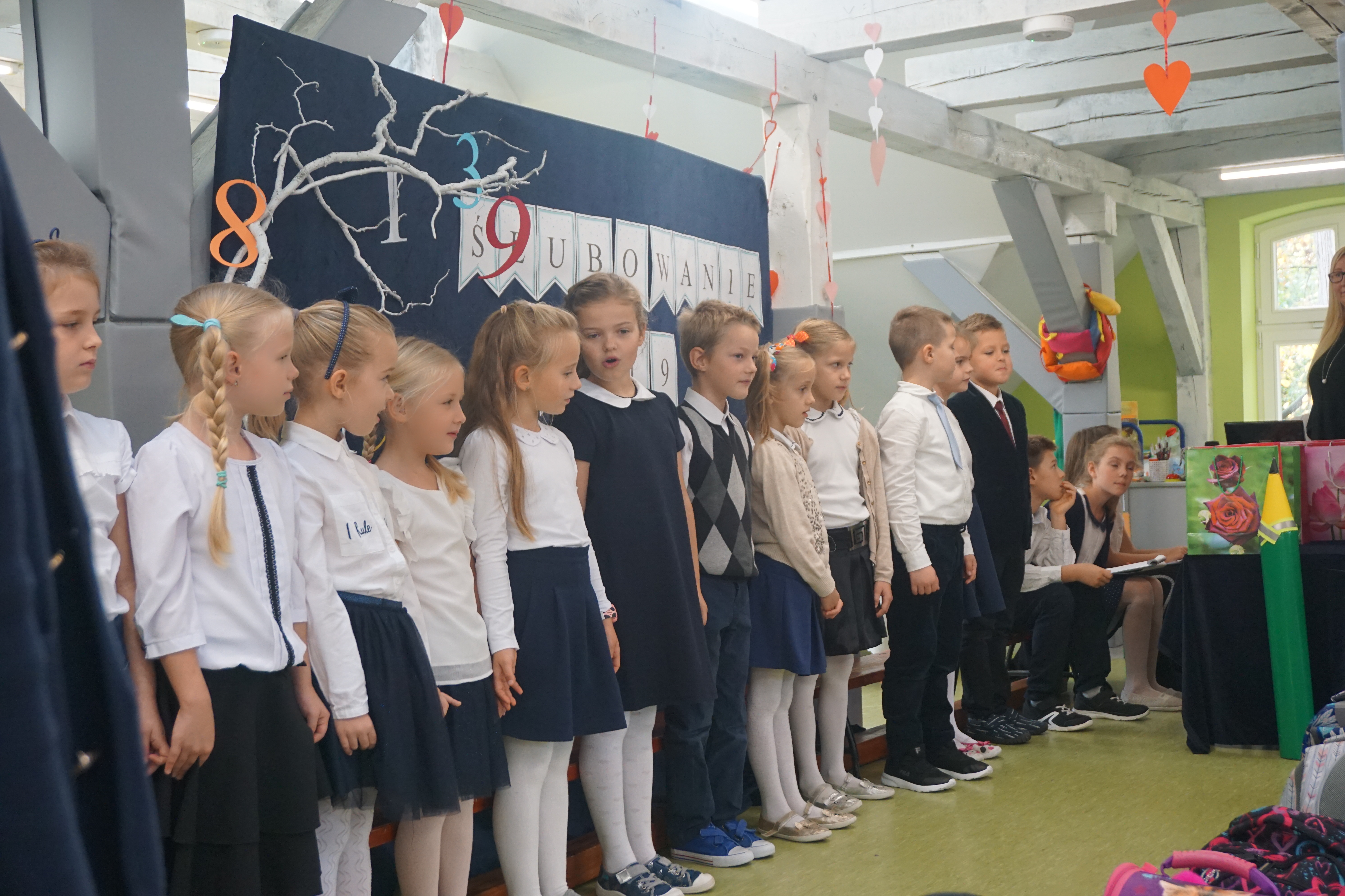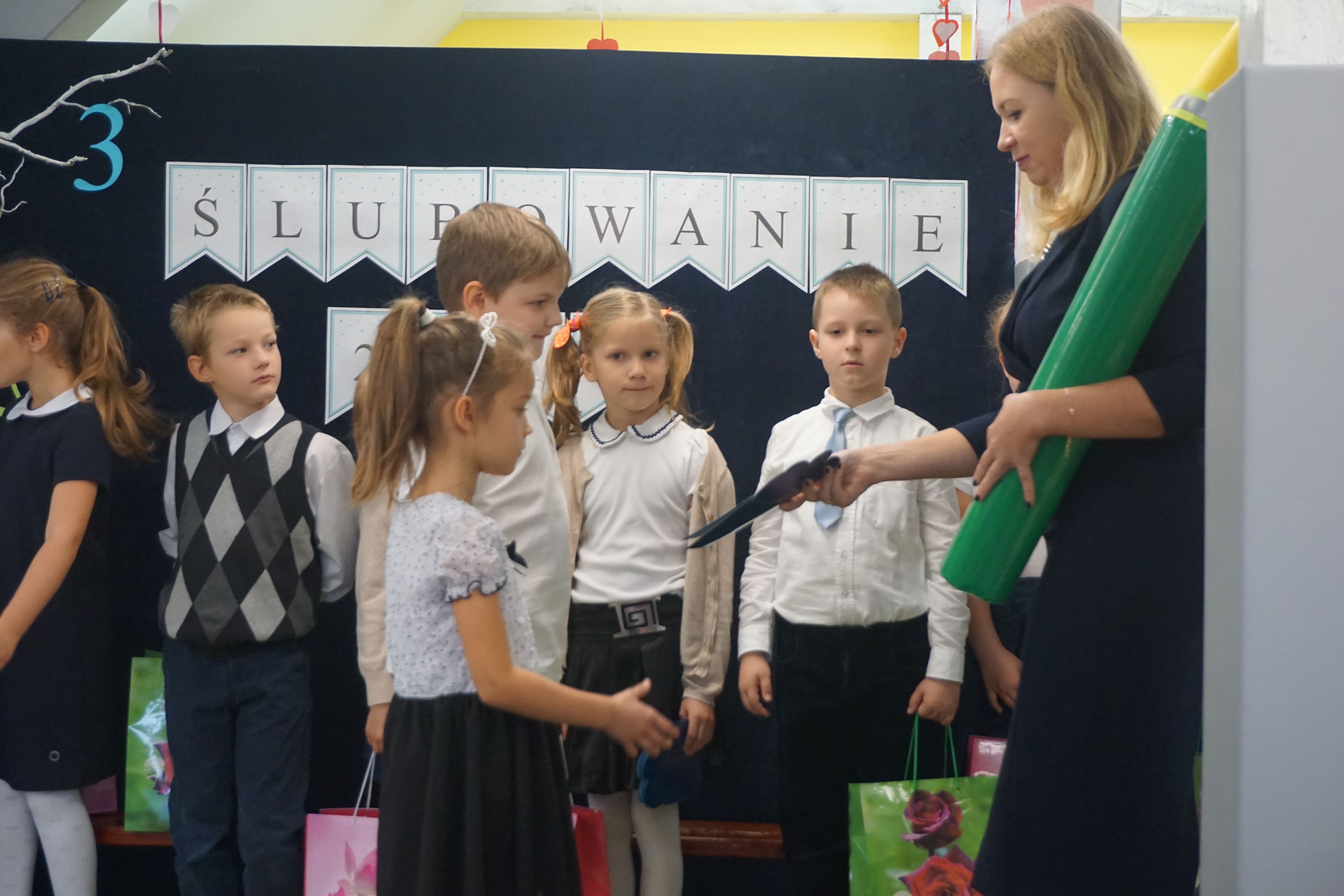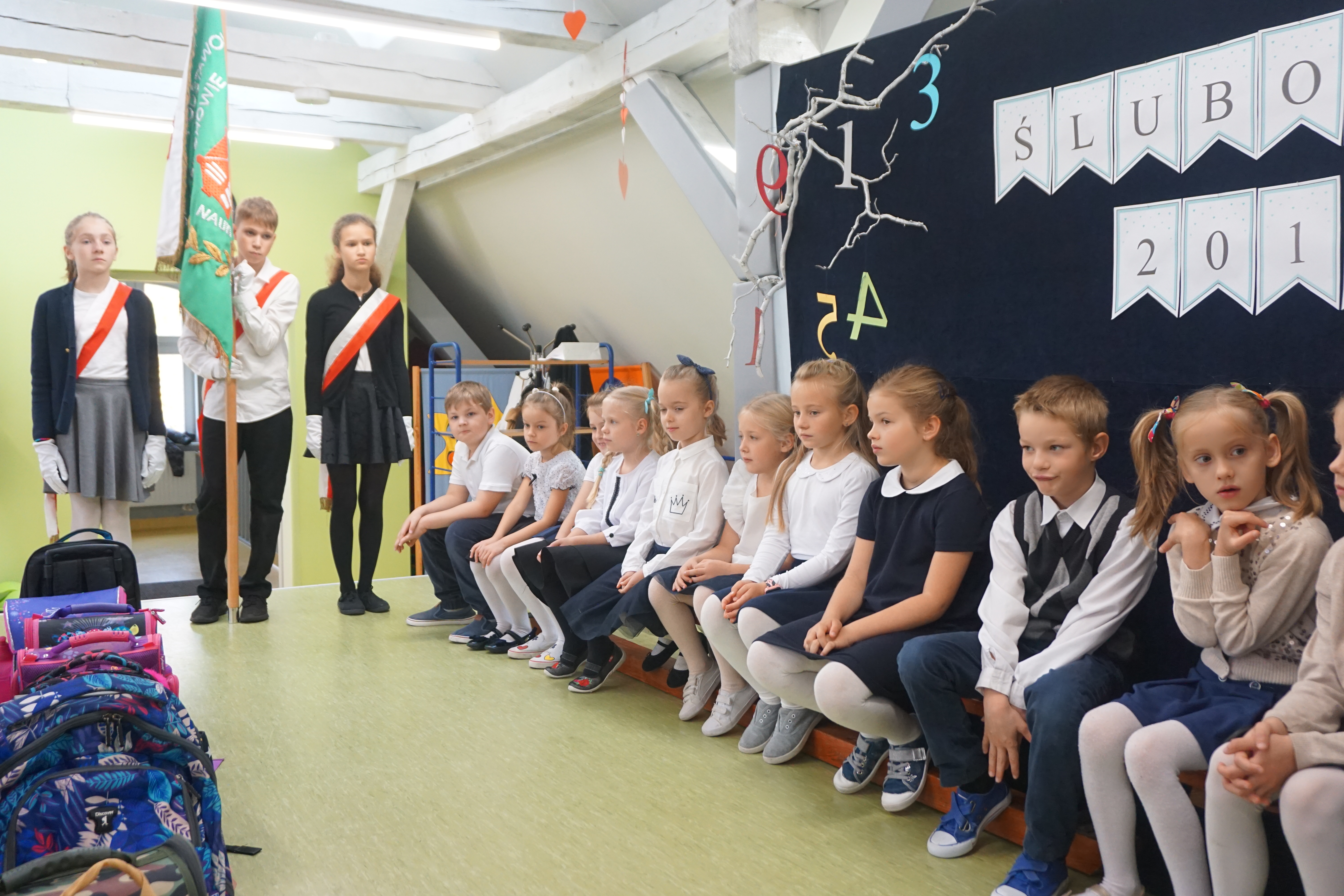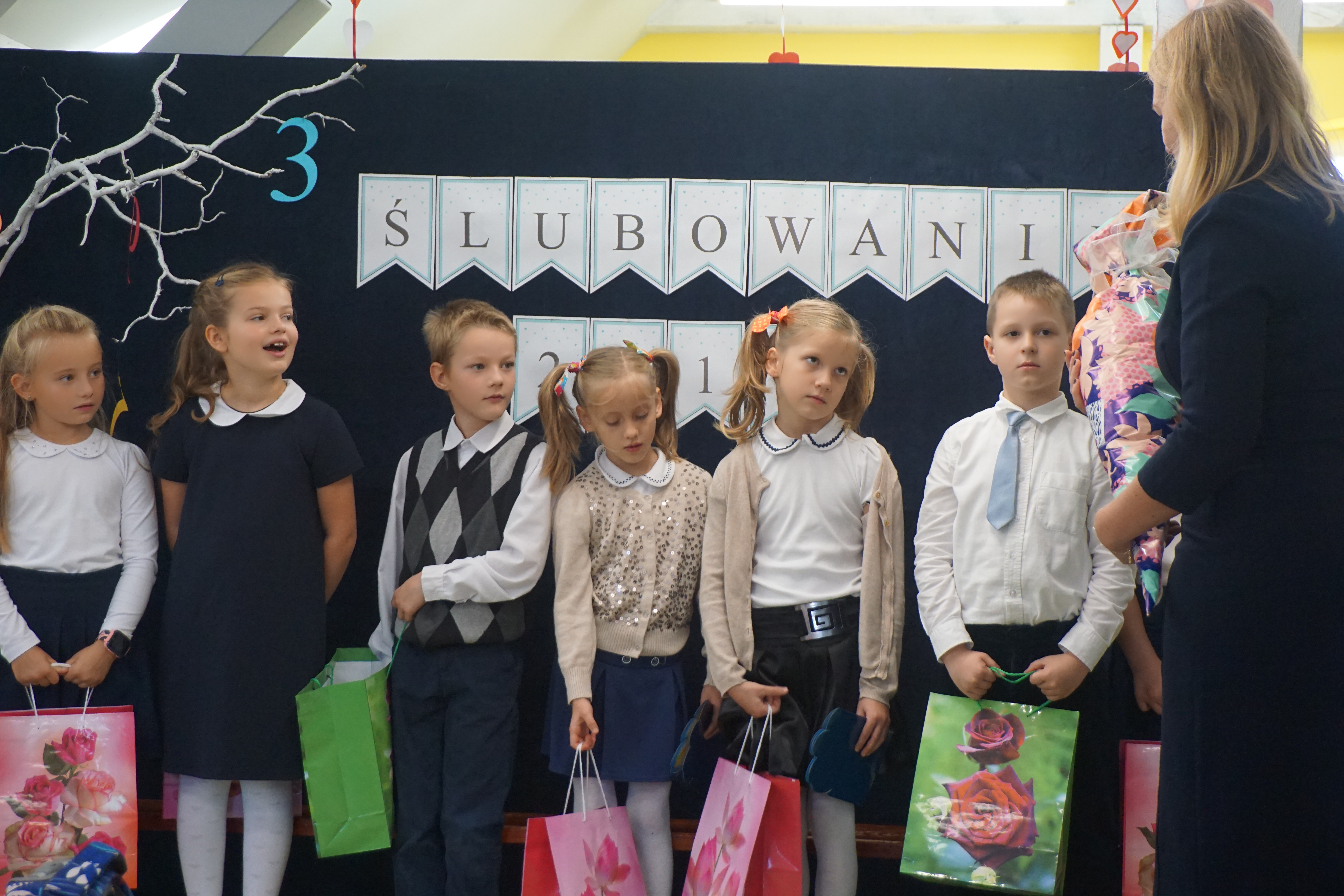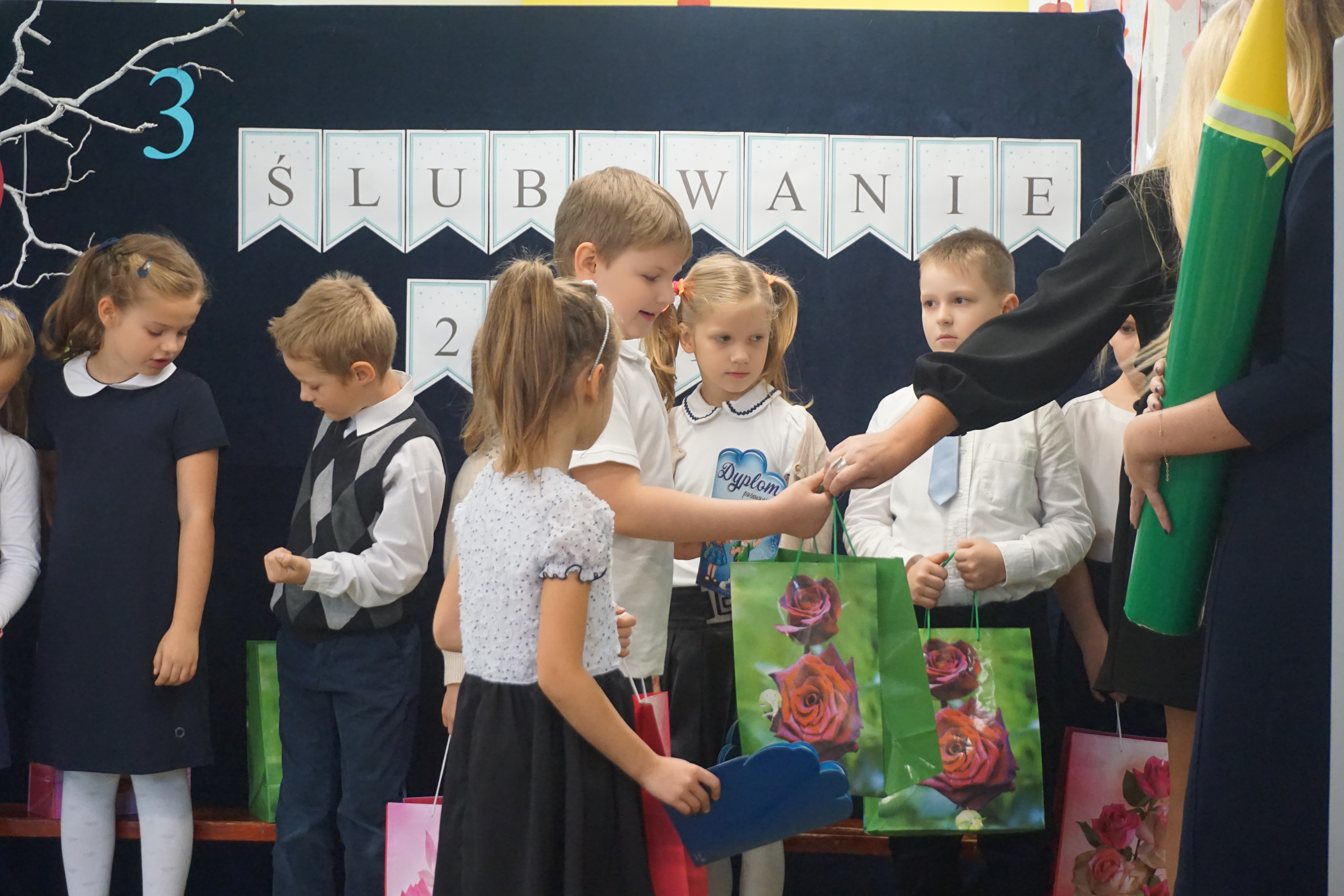 Po programie artystycznym, dzieci złożyły uroczyste ślubowanie i zostały pasowane przez panią wicedyrektor Izabelę Litwicką na uczniów. Każdy uczeń otrzymał pamiątkowy dyplom wraz ze zdjęciem i upominek.