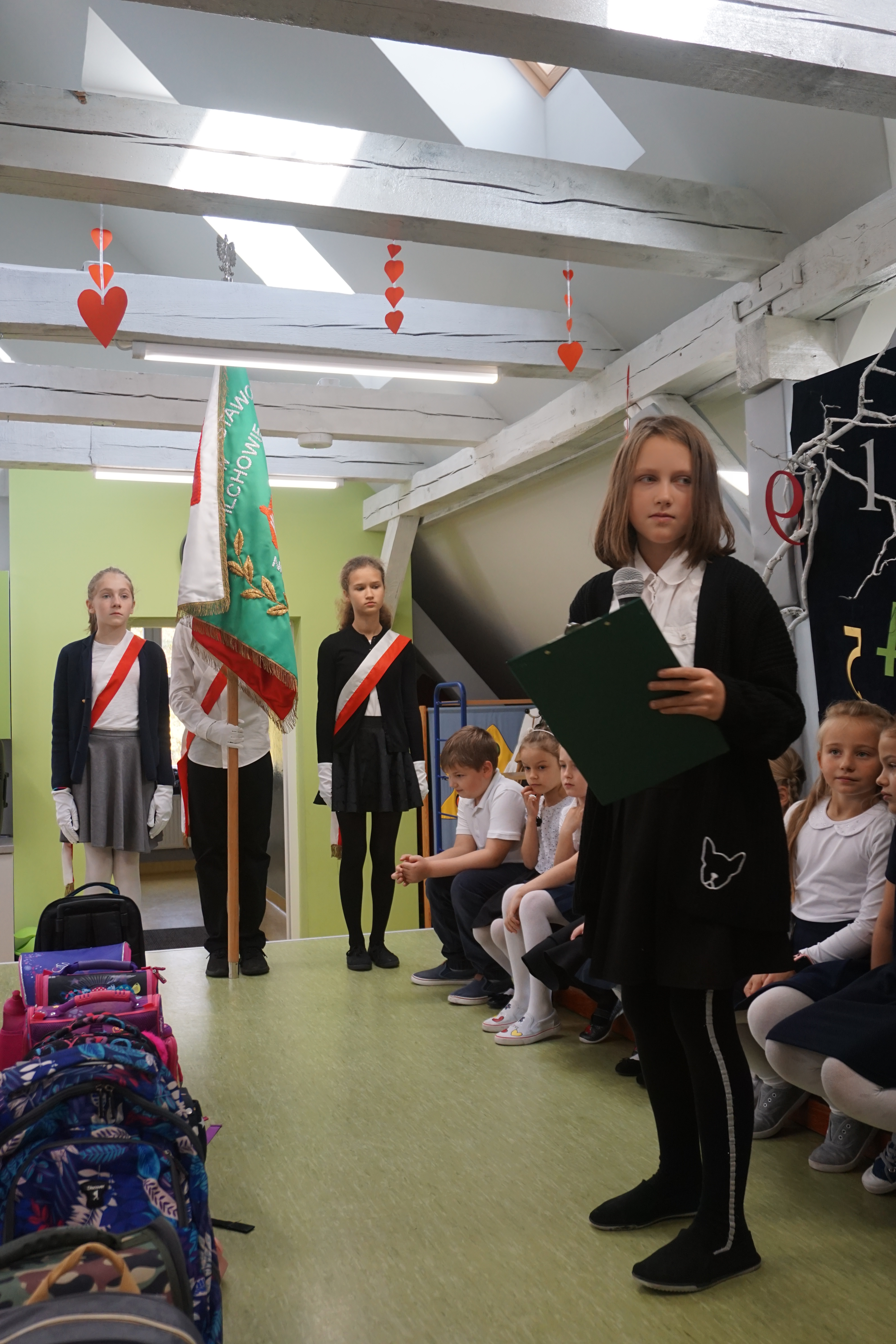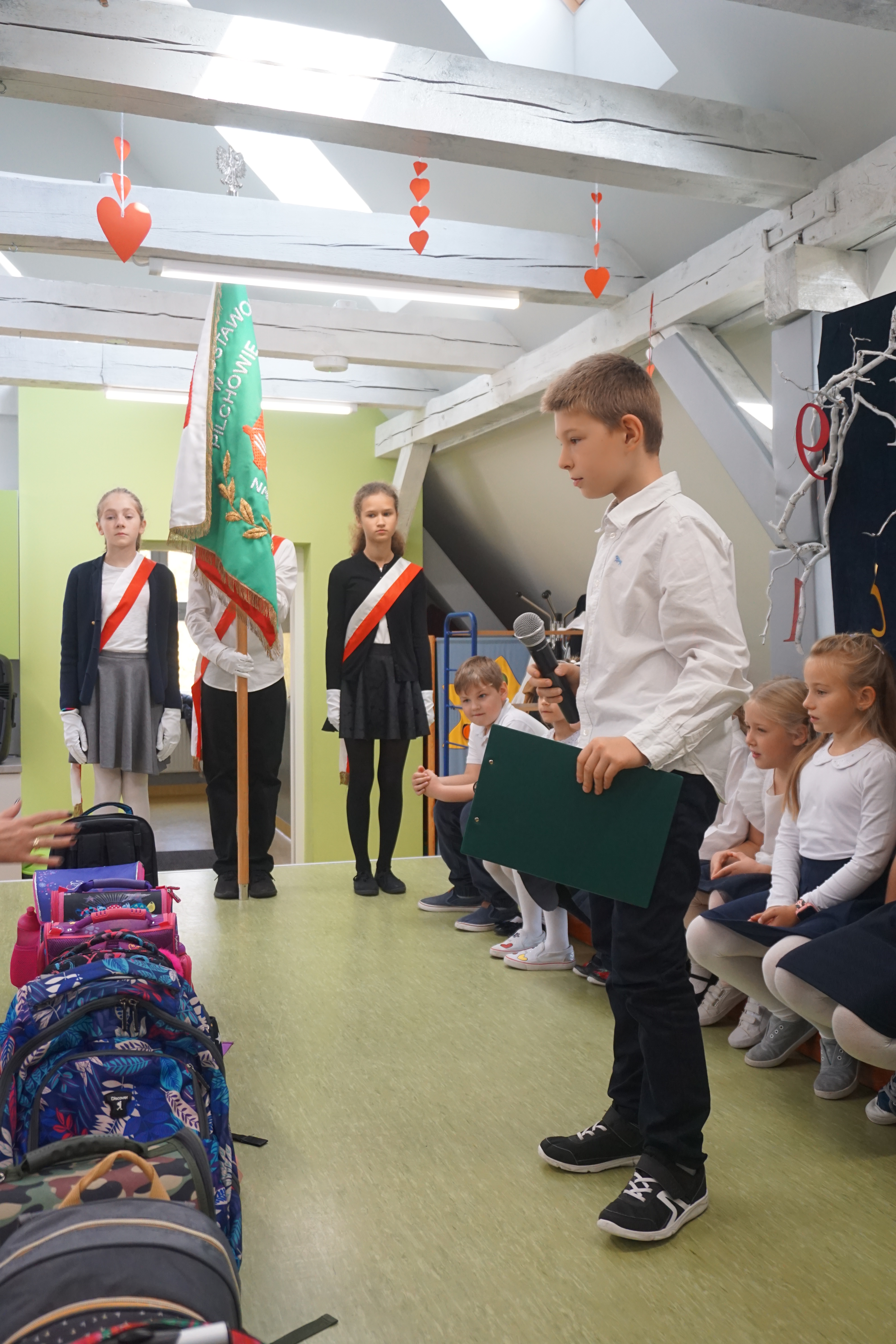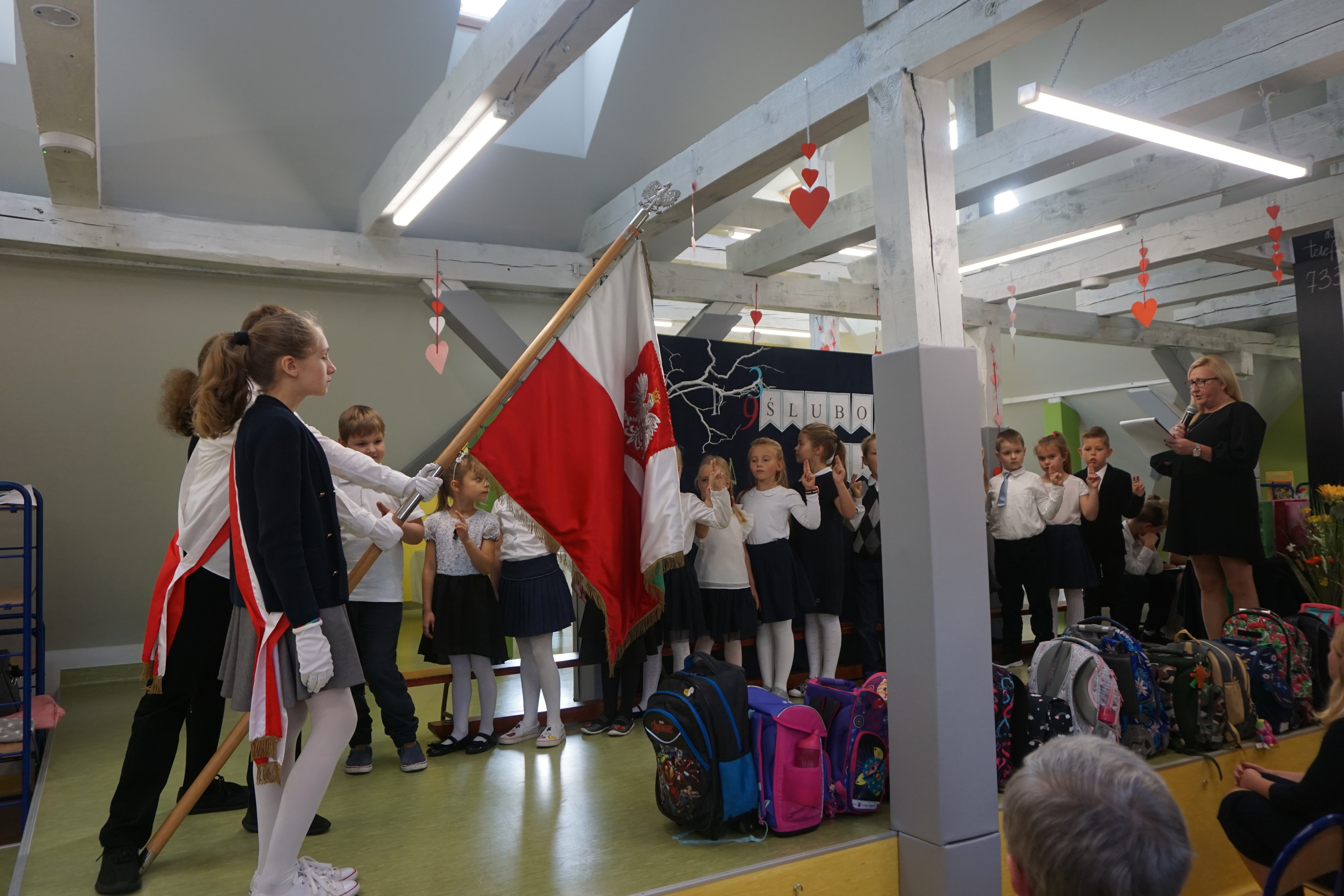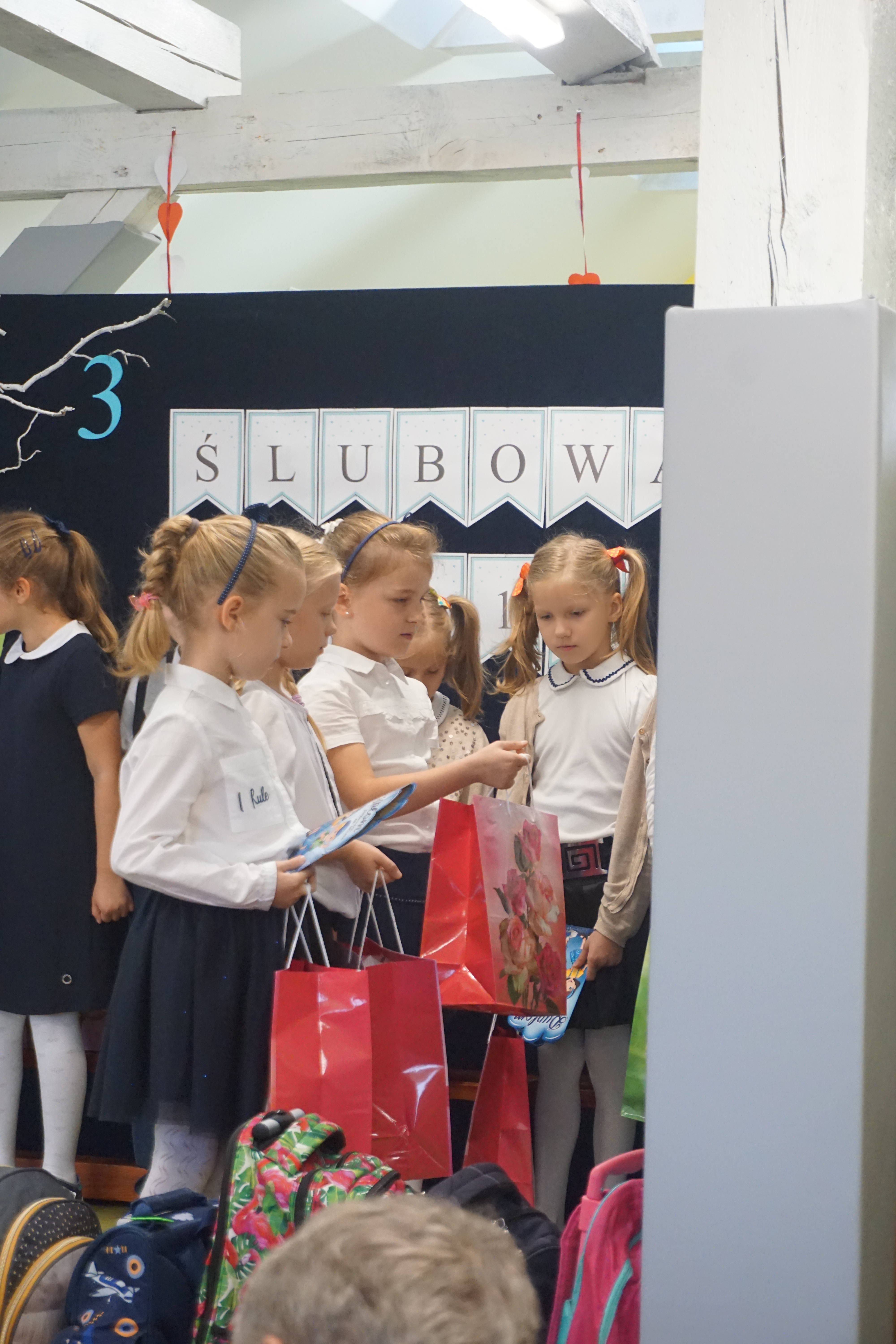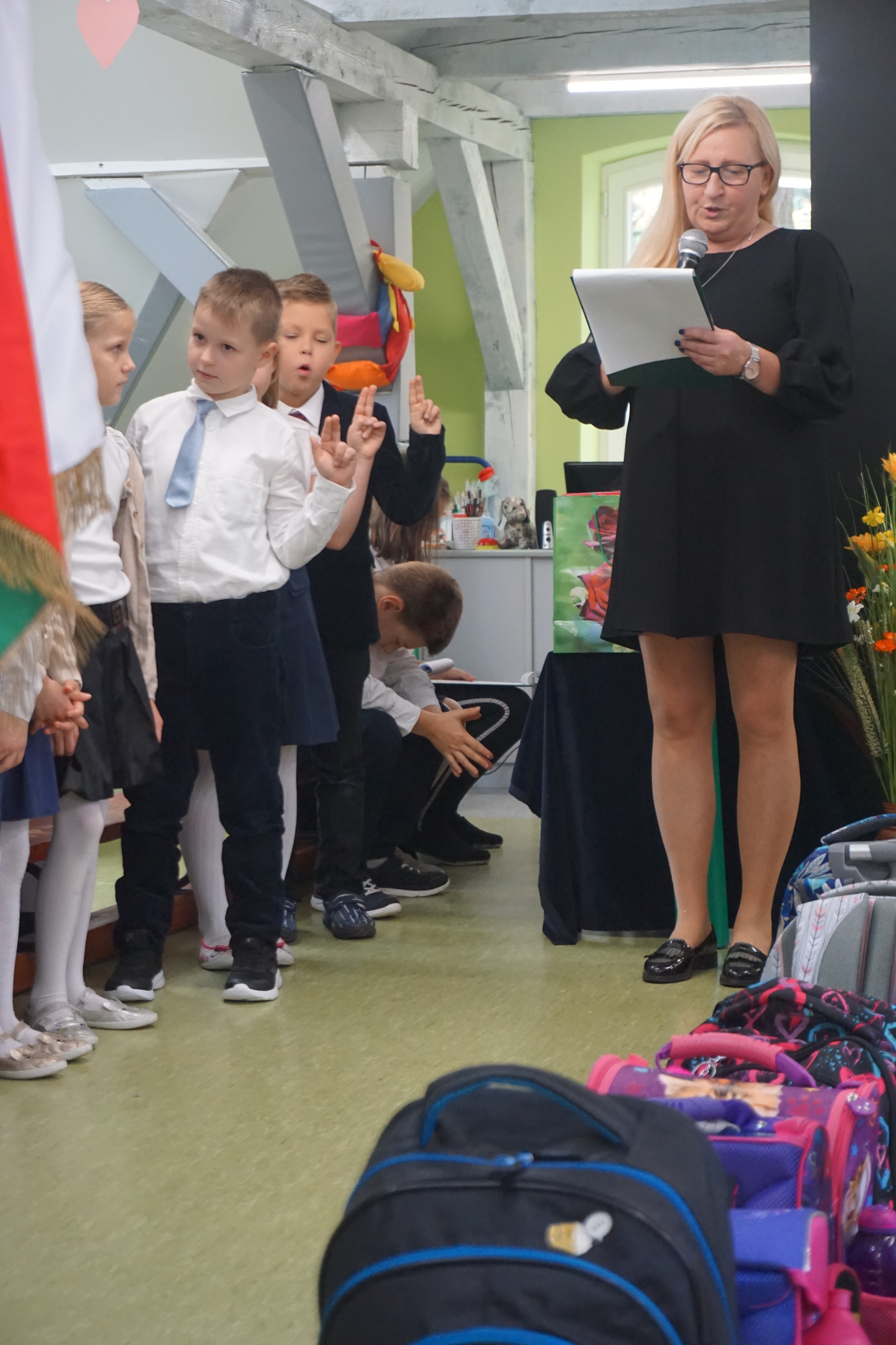 Po programie artystycznym, dzieci złożyły uroczyste ślubowanie i zostały pasowane przez panią wicedyrektor Izabelę Litwicką na uczniów. Każdy uczeń otrzymał pamiątkowy dyplom wraz ze zdjęciem i upominek.