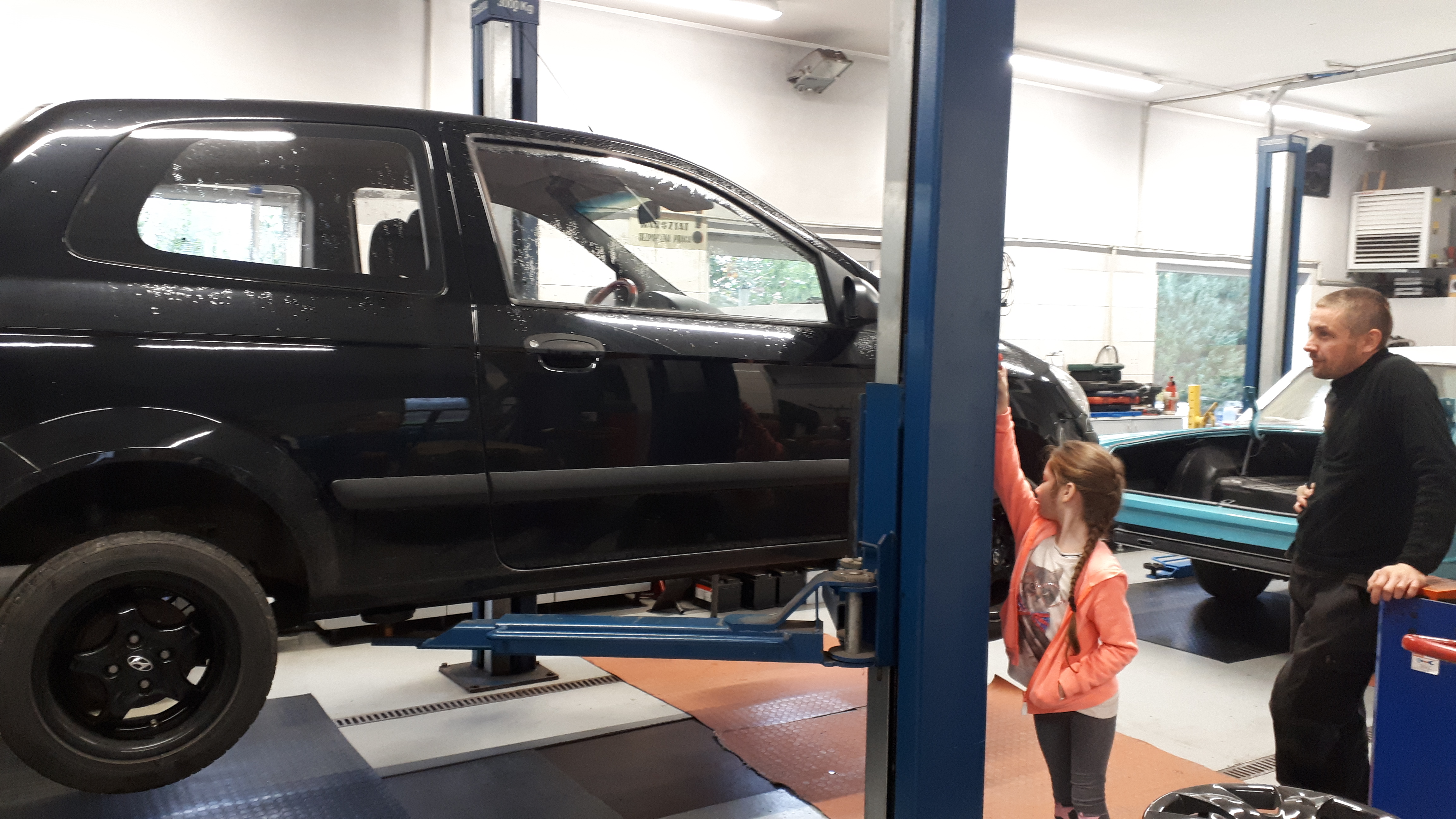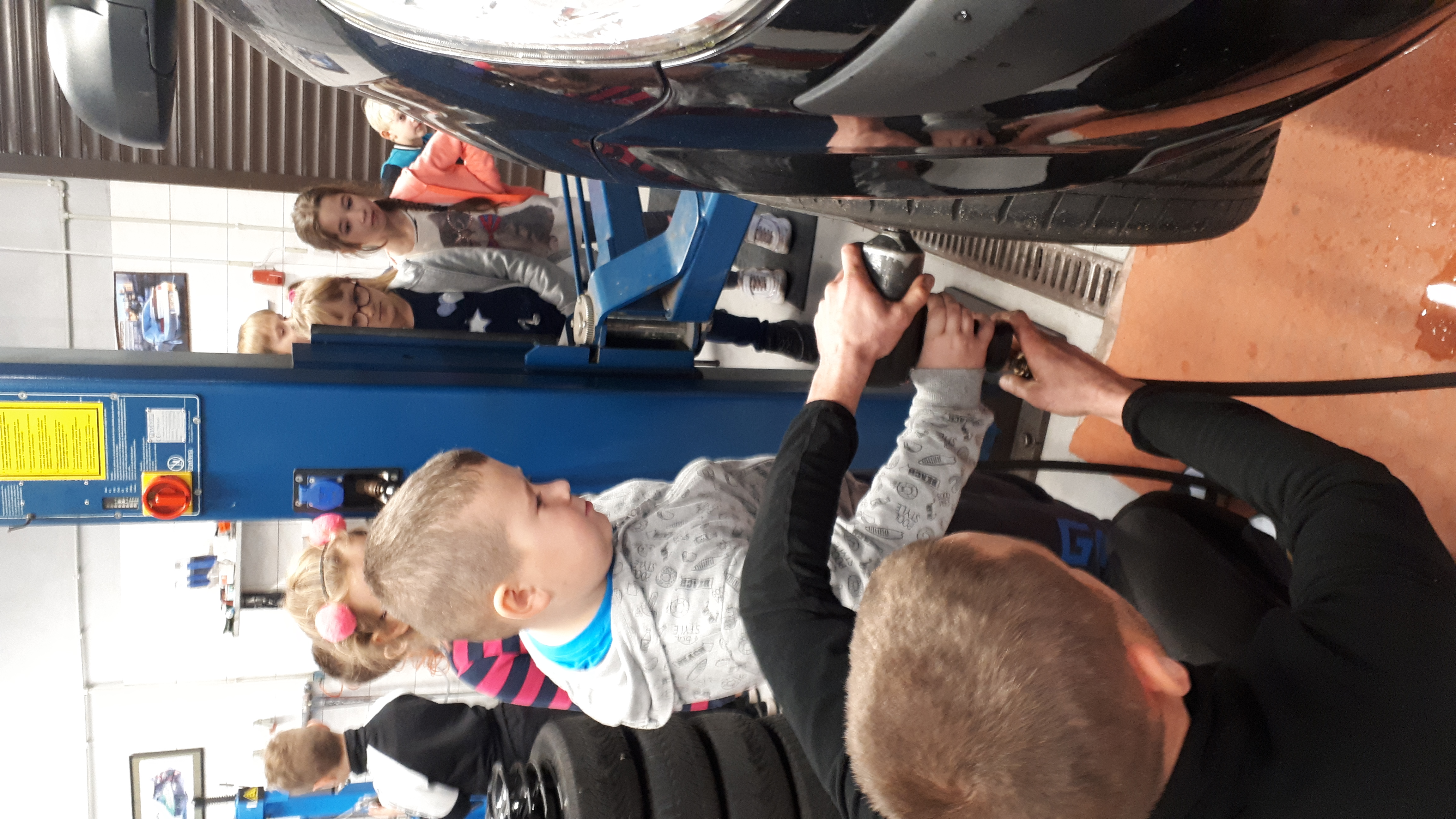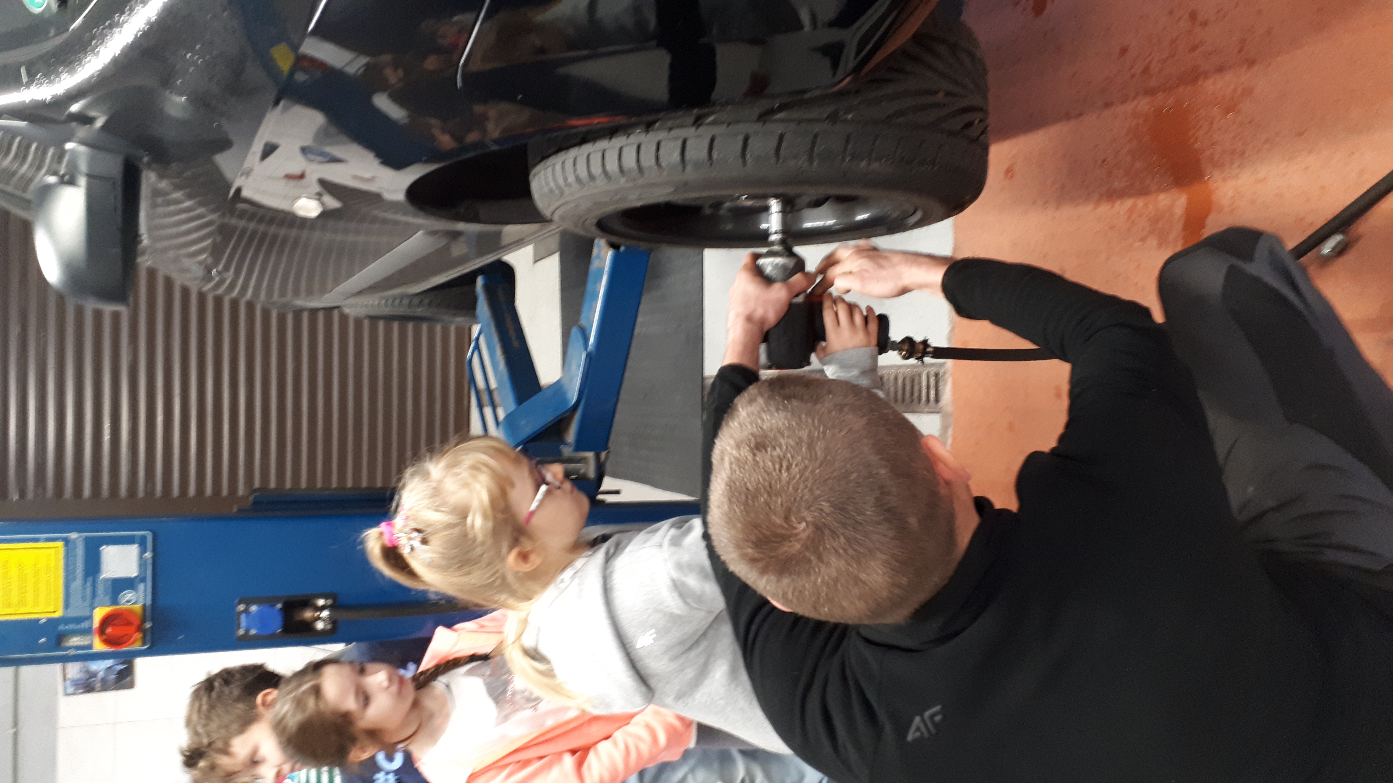 16 października klasa druga z wychowawcą i opiekunem udała się do warsztatu samochodowego w Policach. Na początku uczniowie dostali karty, w których musieli zaznaczyć model auta i rodzaj usterki. Uczniowie mieli możliwość wykonania takich czynności jak: podniesienie auta, odkręcenie śrub w kole, szlifowanie blach i lakierowania. Pan Tomek przygotował konkurs na najszybsze nakręcanie śrubek. Konkurs wygrała Roksana ;-) W nagrodę podniosła auto do góry!