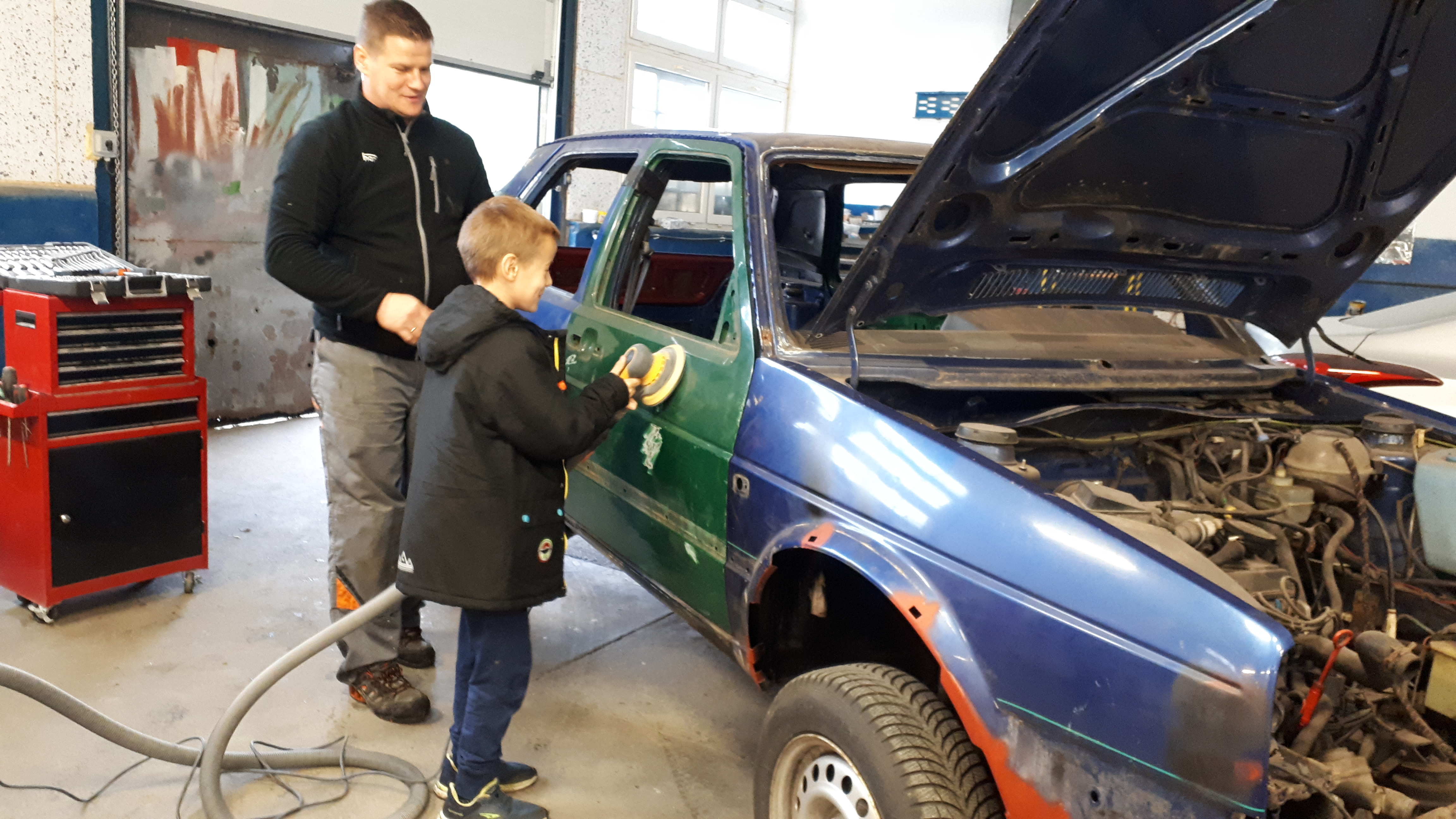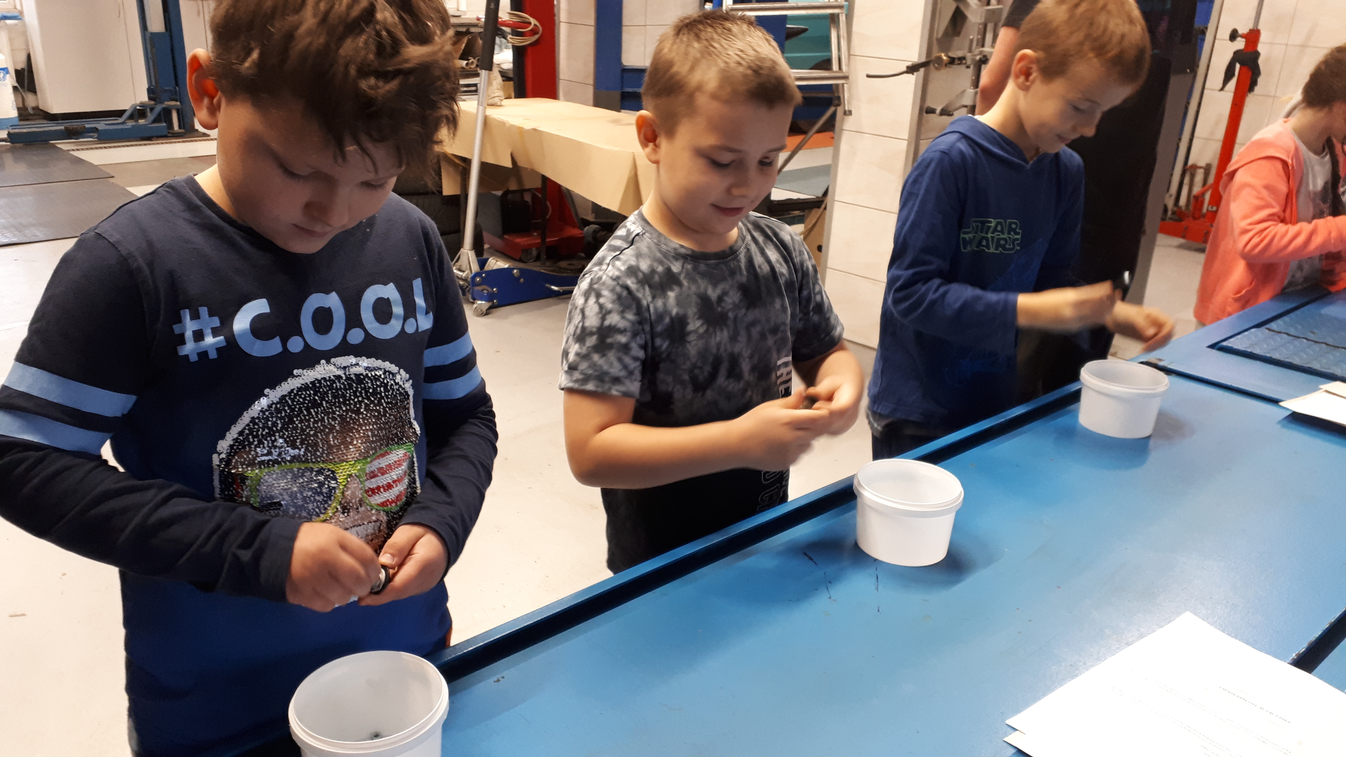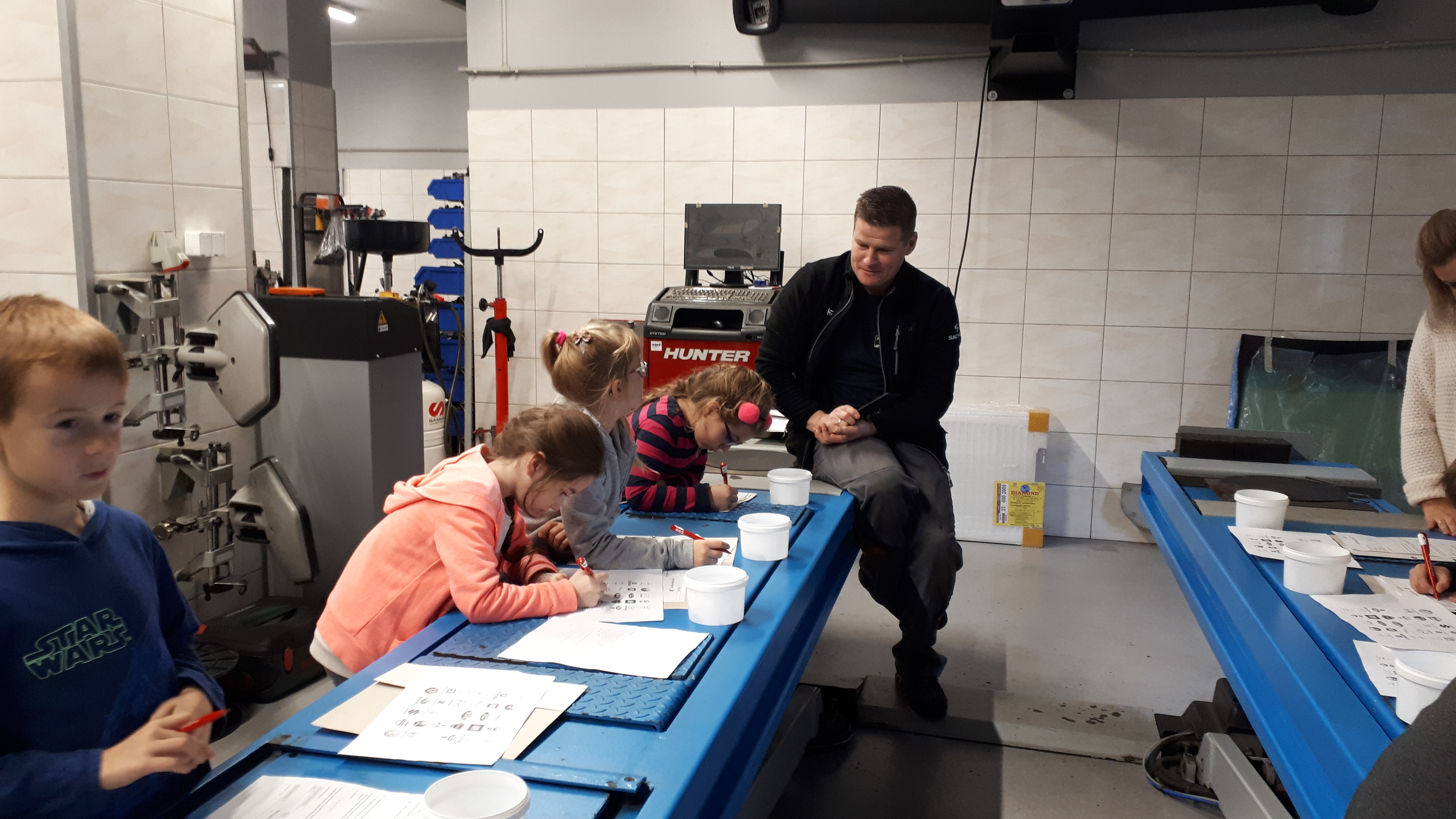 16 października klasa druga z wychowawcą i opiekunem udała się do warsztatu samochodowego w Policach. Na początku uczniowie dostali karty, w których musieli zaznaczyć model auta i rodzaj usterki. Uczniowie mieli możliwość wykonania takich czynności jak: podniesienie auta, odkręcenie śrub w kole, szlifowanie blach i lakierowania. Pan Tomek przygotował konkurs na najszybsze nakręcanie śrubek. Konkurs wygrała Roksana ;-) W nagrodę podniosła auto do góry!