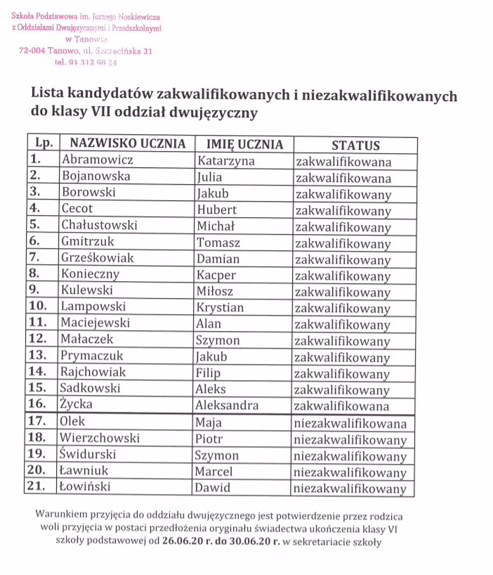 Zgodnie z Zarządzeniem Burmistrza w sprawie określenia terminów przeprowadzenia postępowania rekrutacyjnego i postępowania uzupełniającego do oddziałów dwujęzycznych