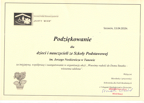 Podziękowanie od Szczecińskiego Stowrzyszenia "Złoty wiek"