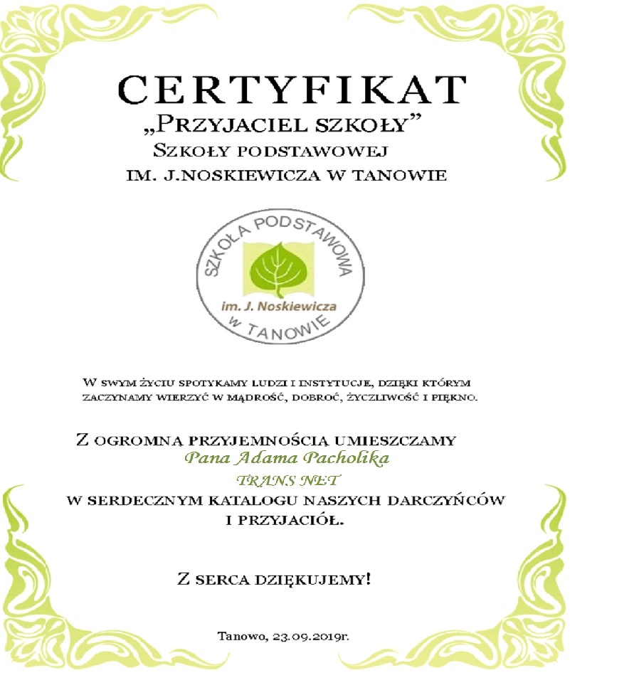 dla Pana Adama Pacholika - TRANS NET